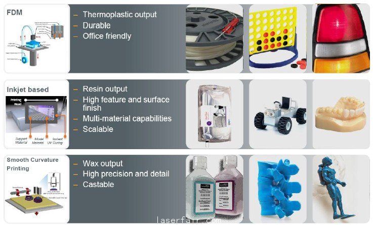 Stratasys共擁有四大技術(shù)平臺(tái):(1)FDM技術(shù),使用熱塑性材料,制造的產(chǎn)品耐久性良好、環(huán)境友好;(2)PolyjetMatrix技術(shù),使用樹(shù)脂類材料,制造的產(chǎn)品細(xì)節(jié)豐富、表面光潔度高,可同時(shí)使用多種材料;(3)SmoothCurvaturePrinting技術(shù),使用熱塑性材料,制造的蠟?zāi)5染哂懈呔苄?;?)Extrudedplasticfilament技術(shù),使用熱塑性擠壓型材,主要應(yīng)用于桌面級(jí)產(chǎn)品。
