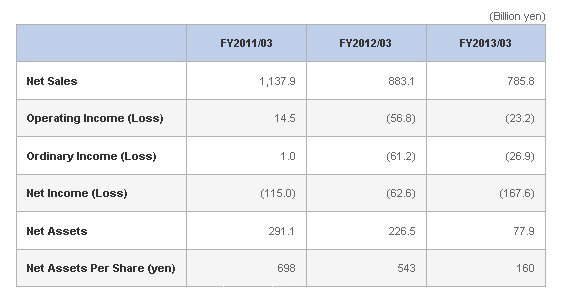 圖1,瑞薩電子2011~2013財(cái)年的財(cái)務(wù)狀況(單位:億日元)