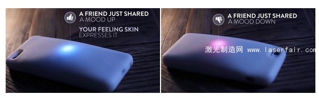 此外,The Feeling Skin還可配合專屬App一起使用,App上可清楚看到The Feeling Skin外殼與iphone本身的電量,還可掌握電量所支持各個應(yīng)用程序的使用長度。最特別的是,The Feeling Skin還具有社交功能,當(dāng)朋友透過此專屬的app發(fā)訊息時,外殼LED燈變會亮起以提醒用戶查看,而不同的顏色代表著不同心情,用戶也只需要單擊后蓋的按鈕,就可以與好友分享心情。目前The Feeling Skin于Kickstarter上募資,售價為49美元。
