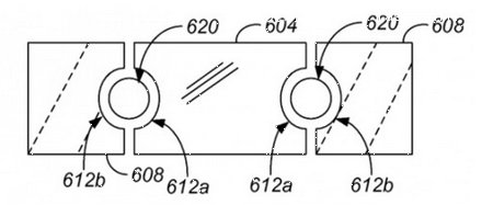 在蘋果專利U.S. Patent No. 8,738,104“將玻璃與金屬邊框一體成型的制造方法與系統(tǒng)”中,液態(tài)金屬又一次被提及。在2007年的與之相關(guān)的制造工藝專利中,iPhone的顯示屏是被安裝并附到有吸震作用的橡膠環(huán)中去的。該制造方法可以有助于緩解沖擊,一直沿用到iPhone5s。