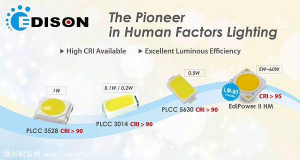 研究指出光源的強(qiáng)度及顏色會對人類的心理及生理健康造成影響,LED因具有高演色性及光色可調(diào)的特性,可依人體需求提供舒適的照明環(huán)境,艾笛森 光電以發(fā)展人因照明為目標(biāo),陸續(xù)推出多款高CRI產(chǎn)品,以PLCC封裝形式為例,目前3014(01瓦/0.2瓦)、5630(0.5瓦)及3528(1 瓦)CRI皆已超過90,而以高光效著稱的EdiPower II HM系列更將規(guī)格提升至CRI 95以上,不僅可應(yīng)用于居家照明及商業(yè)照明,亦可滿足對光源顯色效果要求極高的博物館及醫(yī)院照明。