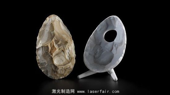 在人類進(jìn)化的百萬(wàn)年歷史上,結(jié)構(gòu)簡(jiǎn)單的“石手斧”曾經(jīng)扮演了相當(dāng)重要的角色。然而在科技日益發(fā)展的今天,人類卻很難想象這款“革命性的工具”到底長(zhǎng)啥樣。幸運(yùn)的是,在Dove Ganchrow和Ami Drach兩位設(shè)計(jì)師的“Man Made”系列作品中,就通過(guò)3D打印技術(shù),重現(xiàn)了這款人類歷史進(jìn)程中的“活化石”。