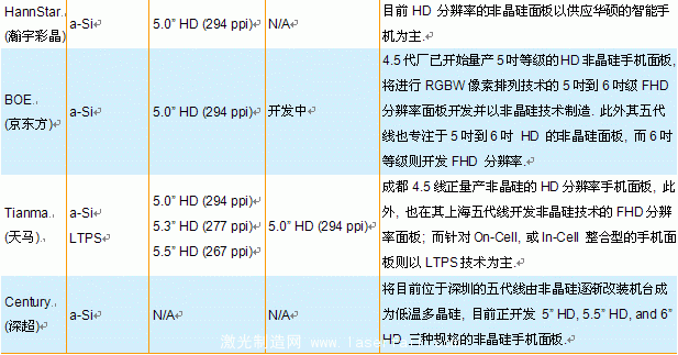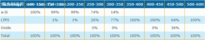 表二、各TFT LCD面板廠商生產(chǎn)a-Si高分辨率智能手機面板的戰(zhàn)略