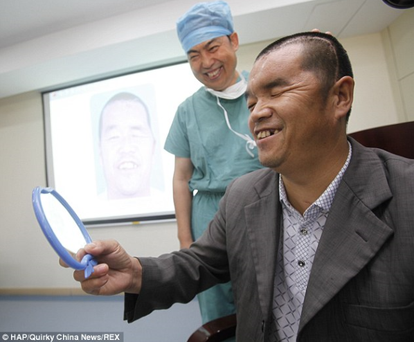 手術(shù)進行了三個半小時,植入的鈦絲網(wǎng)重量僅9.9克,放置在患者的皮膚和肌肉下方。由此,他的頭部的形狀也幾乎恢復到原來的形狀,而一些疤痕仍然是可見的。老胡現(xiàn)在可以開始重建他的生活。他的妻子說,老胡終于開始與人溝通。