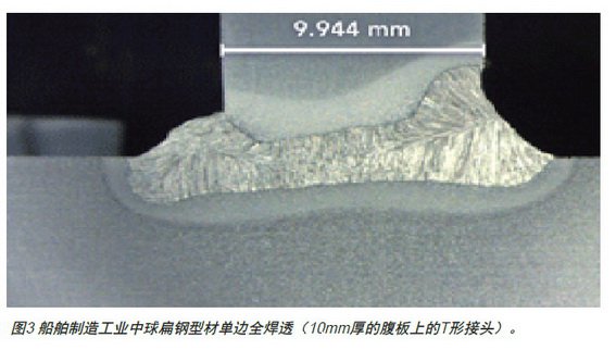 船舶制造中的激光-GMA復(fù)合焊在船舶制造中,球扁鋼型材經(jīng)常用于增加組件和截面零件的剛度,平均加強筋厚度介于4.0和8.0mm之間。到目前為止, 最廣泛使用的焊接工藝是埋弧焊(SAW)。然而,需要克服的問題就是大線能量和低或中等的焊接速度,這會引起翹曲和扭曲,從而需要大量的返工,例如火焰矯形。在這方面的最佳解決方案是使用激光光束,但是制備及預(yù)組裝所產(chǎn)生的公差會影響到激光的單獨應(yīng)用。激光-GMA復(fù)合焊接可以解決這些問題。德國Papenburg的Meyer Werft船廠安裝了CO2 激光-GMA復(fù)合焊接系統(tǒng),并使用了很多年,這足以證明它可以在工業(yè)中得到成功應(yīng)用。對于這類制造行業(yè),通常用T形接頭角焊縫來焊接加強筋。下一部分描述了用固態(tài)激光對上述加強筋型材進(jìn)行單邊全焊透。