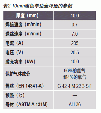 用激光-GMA復(fù)合連接船舶的高強度加厚鋼