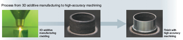 在操作中,INTEGREX I-400AM在噴嘴前端向工件表面噴出金屬粉末、同時照射纖維激光,在各母材上熔融、凝固金屬粉末。這種方法還能將母材與其他金屬強力接合起來。比如,在作為母材的“Inconel738”上,對用于航空領域部件的鎳基超合金“Inconel718”實施沉積成型。因此可用于修復磨損或損壞的零部件,如航空渦輪葉片等。