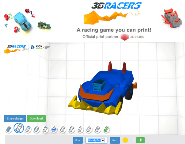 而近日,3DRacers團(tuán)隊推出了一個基于Web的3DRacers在線編輯器,可以讓用戶定制和3D打印一個更小版本的3DRacers賽車(沒有電子)。