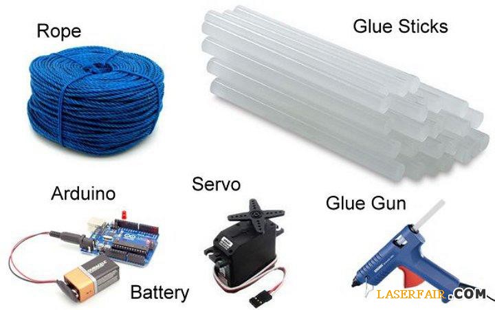 他說,只是一個非常簡單的機(jī)器人,只需幾根尼龍繩和熱膠棒、一個或兩個伺服、一塊 Arduino Uno或任何能夠驅(qū)動伺服和電池的微控制器。