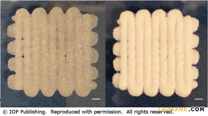 Yang說,過去所做的工作已經(jīng)表明,蛋白質(zhì)和細(xì)胞可以忍受并且在該混合和擠出過程中生存下來,而該材料最終生成的“微孔”也可以幫助組織向內(nèi)生長。