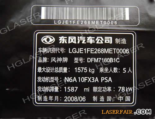 汽車(chē)標(biāo)簽牌打標(biāo)