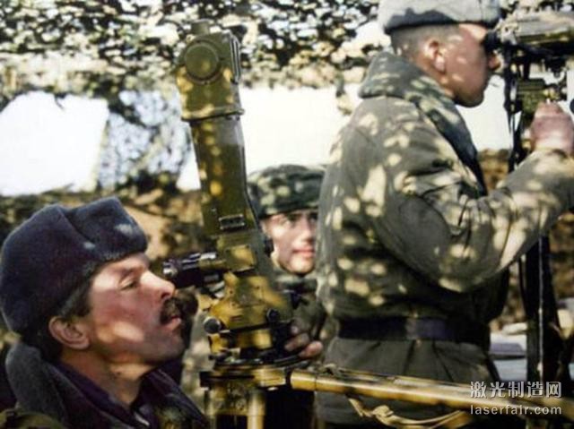 炮兵要想打得準(zhǔn)確,很大程度上,要看測距的準(zhǔn)確性。1888年英國人斯特勞德發(fā)明了單眼合像式測距機(jī)。1892年法國格魯西利爾設(shè)計(jì)出雙眼體視測距機(jī),但誤差較大,到第二次世界大戰(zhàn)時(shí),出現(xiàn)了不失調(diào)的體視測距機(jī),受環(huán)境影響小,提高了測距精度。20世紀(jì)60年代出現(xiàn)了炮兵激光測距機(jī),體積重量較大。到了1977年,美國首先研制成功世界上第一臺(tái)炮兵輕便手持激光測距機(jī),型號(hào)為AN/GVS-5型,該機(jī)外形結(jié)構(gòu)首次采用了適宜手持的雙目望遠(yuǎn)鏡式結(jié)構(gòu),外形大小與一具標(biāo)準(zhǔn)的7X50軍用雙目望遠(yuǎn)鏡相當(dāng),總重量僅2公斤。此后,應(yīng)用AN/GVS-5的研制成果,很多國家都相繼研制出類似于AN/GVS-5的多種型號(hào)的手持激光測距機(jī)裝備部隊(duì),如挪威研制,并由英國改進(jìn)生產(chǎn)的LP-7型激光測距機(jī),被確定為北約部隊(duì)的正式裝備。