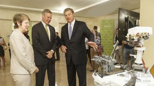 西門子美國公司總裁兼CEO Eric Spiegel(右)正在與佐治亞理工學(xué)院總裁George Peterson(中)和佐治亞理工應(yīng)用研究公司研究部總經(jīng)理Jilda Garton交談