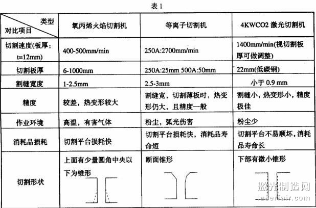 下面列出了激光切割機(jī)與其它兩種切割設(shè)備在參數(shù)直觀簡(jiǎn)略的對(duì)比: