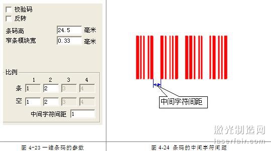中間字符間距:個別條碼規(guī)定字符與字符之間有一定的間距(例如 Code39)。該參數(shù)用來設置此值,如圖4-24所示。