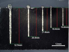在最高不超過(guò)8千瓦的光纖激光功率情況下,這種“復(fù)合”光學(xué)設(shè)計(jì)的離焦量幾乎為零(~0.2 mm/kW)。出人意料的是,這與EWI所有的傳統(tǒng)傳輸聚焦設(shè)備測(cè)量的離焦量相反。這種現(xiàn)象被歸因?yàn)閭鬏敼鈱W(xué)組件的負(fù)離焦(“上方”)和未鍍膜銅反射鏡這一面的正離焦(“下方”)的結(jié)合而引起的。