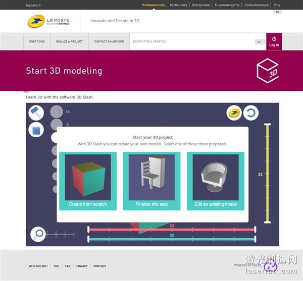 法國郵政的“Innovate and Create in 3D”網(wǎng)站是通過該公司的產(chǎn)業(yè)加速器計劃StartinPost,與Cults3D Slash 合作創(chuàng)建的。Start'inPost是一個為期一年的計劃,主要目的是幫助推動初創(chuàng)企業(yè)的正在。為了盡可能多地幫助所有想要接觸3D建模和3D打印的人,該網(wǎng)站可在所有數(shù)碼設(shè)備(手機(jī)、平板電腦和臺式機(jī))上展現(xiàn),并且有法語和英語兩種界面。