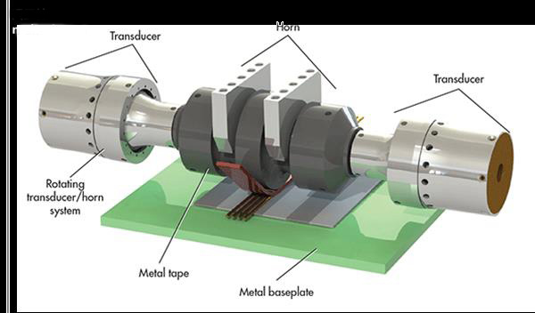 使用這種3D打印技術,Fabrisonic可以用一系列連續(xù)的金屬箔帶生成實體對象,從而制造出金屬零部件。它的基本過程類似于3D打印方法,都是先通過CAD模型來構造一個詳細的3D對象,然后通過一系列的機械操作將其打造出來。首先,操作人員需要將基板固定在機器的砧座上,然后將箔帶拉到焊接角的下方,由后者向下施加壓力,與此同時,一組超聲波換能器將特殊的超聲波震動也施加到這些金屬箔片上。