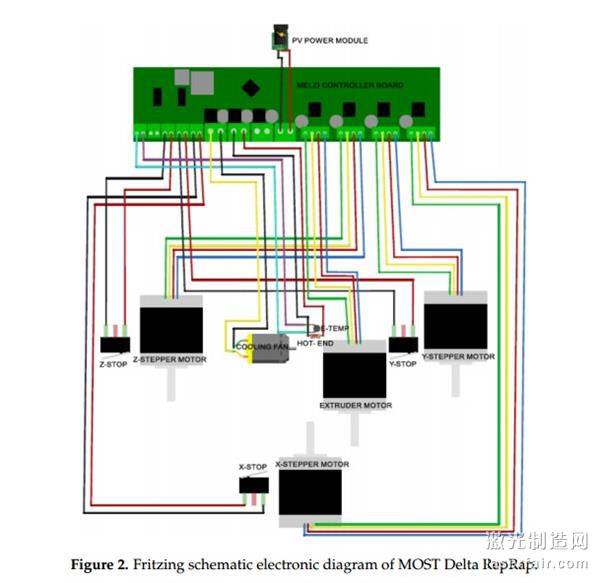 在這項(xiàng)研究中,研究人員將一個(gè)靠太陽能光伏發(fā)電的移動系統(tǒng)與Delta3D打印系統(tǒng)結(jié)合起來,并充分利用最近出現(xiàn)的一些3D打印創(chuàng)新,以盡可能地降低能源消耗。“打印床表面處理的改進(jìn)、像PLA這樣的低溫線材材料的采用,減少了新型3D打印機(jī)中步進(jìn)電機(jī)的數(shù)量和消除了對熱床的需要,從而能夠大幅減少了機(jī)器功耗。”研究人員們解釋稱。他們使用的電池是一種聚合物鋰離子可再充電電池組(14.8V20Ah),這種電池組擁有一種過充保護(hù)電路,這使得它在低光照條件下也能夠備份/存儲能量。