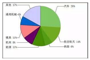 機床和刀具制造業(yè)與汽車制造業(yè)有著極為密切的關系,中國從2009年開始汽車產(chǎn)銷量全球第一,相應地也連續(xù)多年機床消費量全球第一。同時汽車制造業(yè)也是對金屬切削加工刀具需求量最大的行業(yè)(見圖4)。