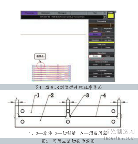 對于不銹鋼類工件,由于外觀要求嚴(yán)格,微焊易引起焊接融痕且不易消除,影響零件的外觀質(zhì)量,現(xiàn)采用如圖5所示的間隔點(diǎn)法切割。進(jìn)入用戶界面(圖6),依次點(diǎn)擊“Create”→“Start”按鈕即可創(chuàng)建間隔點(diǎn)。