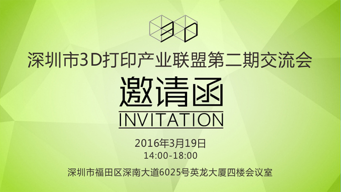 深圳市3D打印產(chǎn)業(yè)聯(lián)盟第二期交流會邀請函
