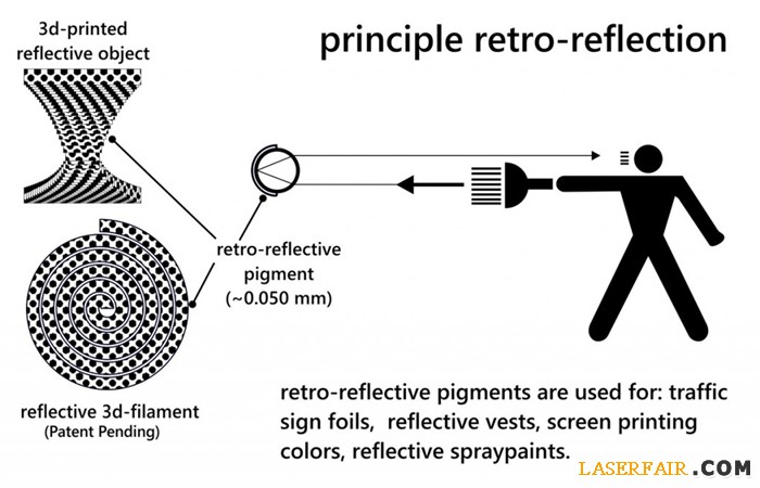 據(jù)Kai稱,這樣一種新型3D打印材料其實(shí)可以追溯到他在1998年的時(shí)候獲得的一項(xiàng)發(fā)明專利。“在1998年我發(fā)明了一種可反光的噴漆,可以使騎自行車的人更加顯眼,從而保證其交通安全。”他解釋道。“有了它,汽車司機(jī)就可以通過(guò)車燈很容易地看到他們。它可以噴灑到衣服或者自行車的車輪上。這種噴漆在衣服上的時(shí)候肉眼幾乎看不出來(lái),而且也很容易洗掉。”