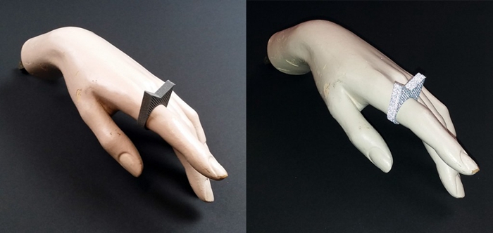據(jù)Kai介紹,這種材料使用了我們常見(jiàn)的道路交通標(biāo)志中常見(jiàn)的回歸反射原理,也就是說(shuō)這種材料能夠直接將光線反射回來(lái)。除此之外,Kai補(bǔ)充說(shuō),這種線材也很有彈性。