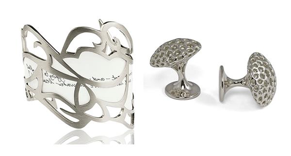 據(jù)了解,PGI選擇了兩位來自英國(guó)的設(shè)計(jì)師設(shè)計(jì)出了首批使用鉑金3D打印而成的首飾。其中Clara Breen受到一個(gè)中國(guó)古董花瓶上面圖案的啟發(fā),設(shè)計(jì)出了一個(gè)造型大膽的手鐲,而Joseph Jackson則創(chuàng)造了一對(duì)袖扣,這兩粒鉑金袖扣是一起打印出來的。