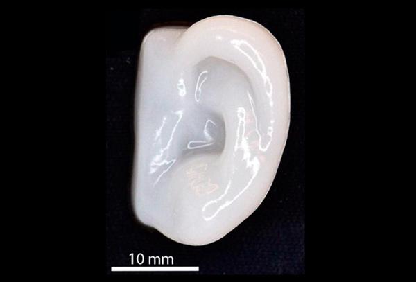 使用這種混合物,研究人員就能夠在一個特定的體系結構(比如說類似耳朵的形狀)中打印活細胞,同時在打印后仍然保持其形狀。而打印后的細胞能夠在實驗室的培養(yǎng)皿中生成軟骨。