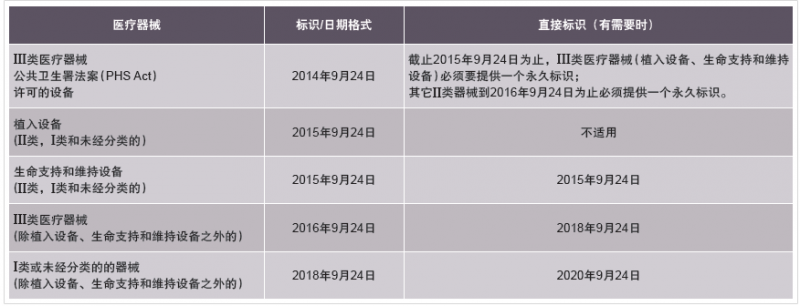 表1:在所有類別的醫(yī)療器械上提供永久性標(biāo)識(shí)的最后期限