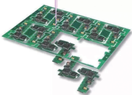 切割斷點(diǎn)分板,激光系統(tǒng)會(huì)通過一個(gè)前面所述的加工過程切斷連接點(diǎn)。這個(gè)切割過程可緊挨靠近邊緣的元器件進(jìn)行,對(duì)于較厚的電路板來(lái)說(shuō)也是非常經(jīng)濟(jì)的。