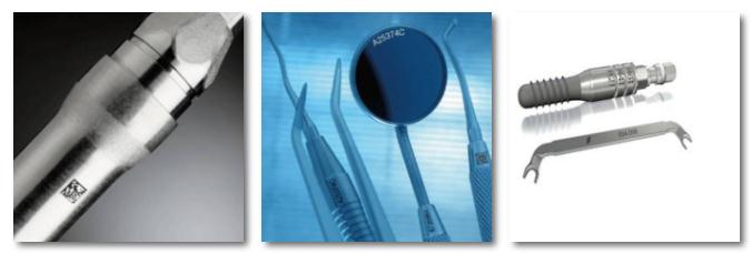 利用激光打標(biāo)機(jī)在不銹鋼外科手術(shù)和牙科設(shè)備等醫(yī)療器材上標(biāo)記,更易讀取,經(jīng)過(guò)無(wú)數(shù)次消毒和清洗的標(biāo)記照樣清晰可見(jiàn),而且能有效防止細(xì)菌粘著在器材表面。