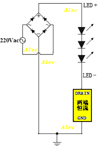 ▲圖5 兩端恒流控制IC 的應(yīng)用圖