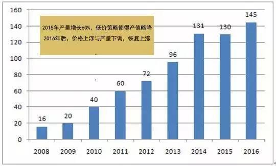 MOCVD設(shè)備的價格與產(chǎn)能在2008年,31片機(jī)要200萬美金,2013年,54片機(jī)只要150萬美金,2016年,124片機(jī)只要220萬美金,跟54片機(jī)同等級的國產(chǎn)MOCVD可能只要100萬美金。同樣的,后段分選機(jī)的性能與價格在2008年,一個月10kk產(chǎn)量的設(shè)備要10萬美金,2015年,一個月20kk產(chǎn)量的設(shè)備只要4萬美金有找,以前的設(shè)備一個人只能看管5臺機(jī),現(xiàn)在一個人可以看管15臺機(jī)。