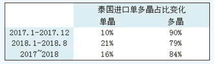 出口泰國的組件多以多晶組件為主,隨著近年來單晶市占比不斷提高,出口泰國的組件也隨著單多晶的市況逐步拉高單多晶比例。