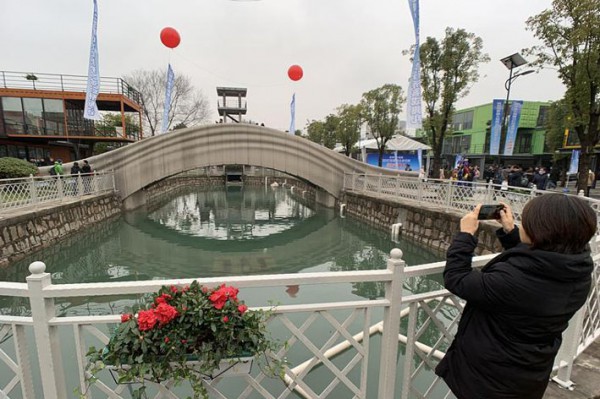 1月12日,目前世界最大規(guī)模3D打印混凝土步行橋在上海智慧灣科創(chuàng)園落成。該步行橋的建成,標(biāo)志著中國(guó)3D混凝土打印建造技術(shù)進(jìn)入世界先進(jìn)水平。整體橋梁工程的打印用了兩臺(tái)機(jī)器臂3D打印系統(tǒng),共用450小時(shí)打印完成全部混凝土構(gòu)件。與同等規(guī)模的橋梁相比,它的造價(jià)只有普通橋梁造價(jià)的三分之二。設(shè)計(jì)研發(fā)團(tuán)隊(duì)透露,未來(lái)的目標(biāo)是要用這一技術(shù)打印房屋。