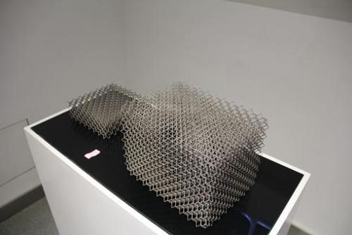 利用金屬3D打印技術(shù)打印出的鈦合金鏤空點(diǎn)陣結(jié)構(gòu)。李晨/攝