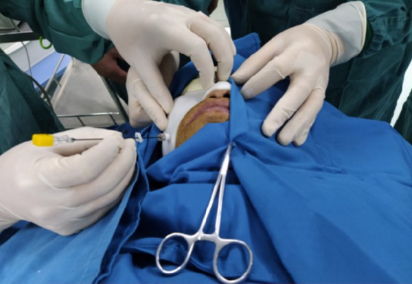 來自西安市63歲的張大爺,2015年在外院接受開顱三叉神經(jīng)微血管減壓術,術后不久復發(fā)。最近一段時間,疼痛突然加劇,每天口服卡馬西平1000毫克,疼痛還是每天發(fā)作近10次,每次持續(xù)5至20秒,說話、吃飯時常常伴隨著劇烈疼痛,嚴重影響日常生活,遂來到西京醫(yī)院疼痛醫(yī)學中心就診。呂巖教授、顧楠博士團隊接診后,考慮到兩個因素:患者曾做過開顱手術可能出現(xiàn)瘢痕等術后改變;卵圓孔周圍解剖結構復雜,傳統(tǒng)X線、CT引導下穿刺位置及疼痛目標需要反復多次確認,容易造成周圍組織損傷,引起血腫甚至顱內出血、神經(jīng)損傷、腦脊液外漏等并發(fā)癥,經(jīng)過反顧論證,最終決定借助3D技術,個體化定制手術導航系統(tǒng),在該系統(tǒng)幫助下實施精準穿刺、治療。