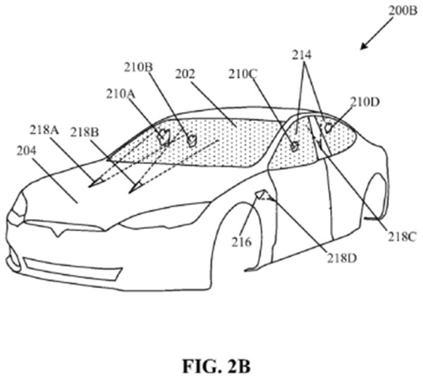 從專利圖中可以看出,該系統(tǒng)組件被安裝在汽車“引擎蓋”下方靠近前擋風玻璃的位置,“引擎蓋”上會探出兩個出口,就像所有汽車引擎蓋上的出水口一樣,不過它們噴射的不是水,而是激光束。特斯拉解釋說,該系統(tǒng)還可以自動清除任何阻礙自動駕駛汽車攝像頭視野的碎片。