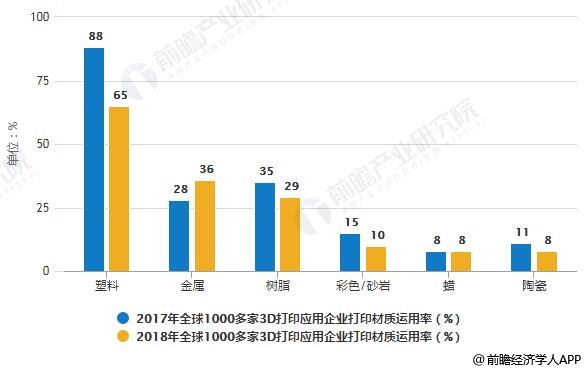 2017-2018年全球1000多家3D打印應用企業(yè)打印材質需求調研情況