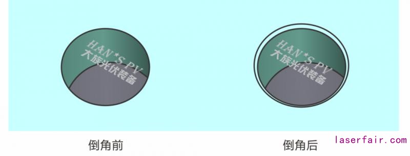 激光鉆孔法精度高、污染低,可以提高產(chǎn)品良率。激光鉆孔完成后,進入倒角程序,倒角機對激光切割后的玻璃圓孔進行倒角加工。倒角機采用CCD系統(tǒng)進行精度為±0.01mm的定位,利用定制集成系統(tǒng)補圓弧倒角,可實現(xiàn)玻璃上下表面同時作業(yè);全幅面內(nèi)任意孔均可倒角,倒角效率高達0.2s/孔,倒角尺寸C為 0.2-0.5mm;設(shè)備的運行成本低,穩(wěn)定性可靠。