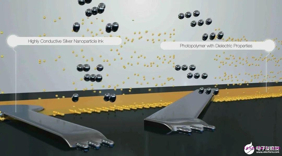 同時進行多種材料的增材制造這種種革命性的方法,可以幫助重新定義未來的電子產(chǎn)品的屬性,包括密度,尺寸和靈活性。至少 配有兩個打印頭,一個用于納米銀導(dǎo)電墨水,另一個用于介電聚合物墨水。允許DragonFly LDM在單個3D打印作業(yè)中同時使用兩種墨水進行打印。
