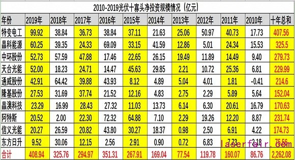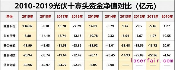 2. 十大寡頭十年累計吸金1739億元,2019年10寡頭凈籌資額占158家光伏上市公司的比重達107.05%。