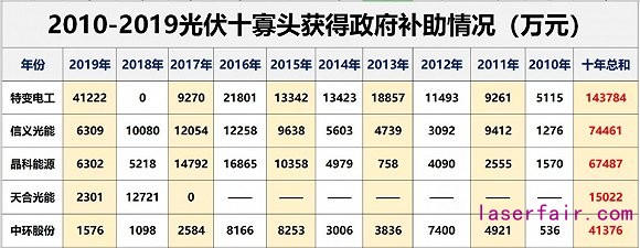 企業(yè)為政府貢獻稅收,而有時政府也會為企業(yè)提供補助,幫助企業(yè)發(fā)展壯大。據(jù)黑鷹光伏統(tǒng)計,過去十年間,10寡頭累計獲得政府補助規(guī)模都在億元以上,合計獲得政府補助規(guī)模超45億元。前三名為特變電工(14.38億元)、信義光能(7.45億元)、晶科能源(6.75億元)。