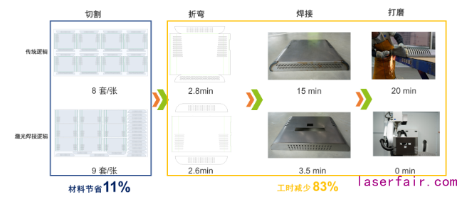 而如果把視角拉回鈑金生產(chǎn)的全局(如下圖所示),我們會發(fā)現(xiàn),我們一直以來賴以為真理的“用折彎去取代焊縫”的設計邏輯在激光焊接這里被徹底顛覆了,因為Trulaser Weld 5000BE產(chǎn)出的焊縫是如此美觀且高效,我們甚至愿意用“焊縫來取代折彎”。