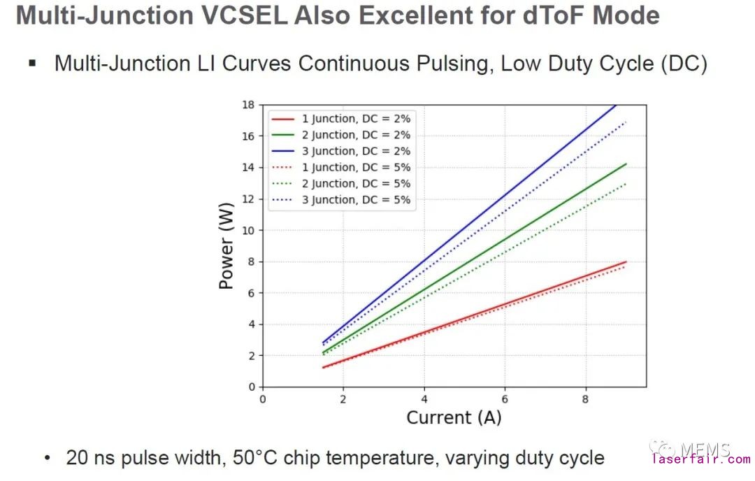 iToF模式工作的單結(jié)VCSEL和三結(jié)VCSEL:芯片面積不變,單位功率密度大幅提升