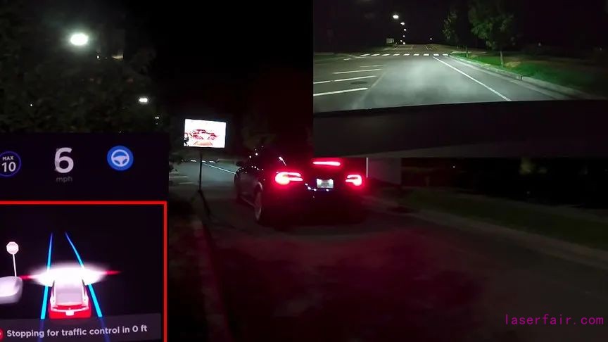 在另一場實驗中,搭載了HW2.5自動駕駛芯片的特斯拉還會將投影在路面上的人形圖像識別為行人,從而減速。