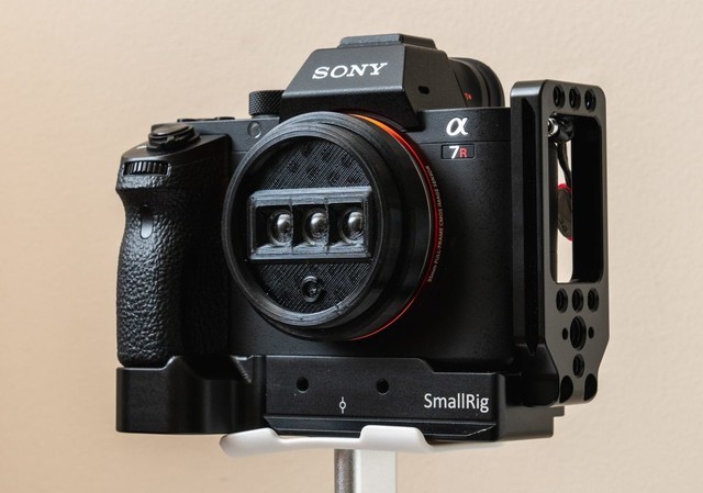 Moua的3D打印鏡頭的特別之處在于,它使用戶首次用數(shù)碼相機(jī)實(shí)現(xiàn)了同樣的效果。原始版本包含三個(gè)30毫米的鏡頭,每個(gè)鏡頭都能將一個(gè)稍微不同的視角投射到數(shù)字索尼相機(jī)的全畫(huà)幅傳感器上。然后,這些視角可以被數(shù)字 "切割",并像物理電影卷軸的框架一樣滾動(dòng),以產(chǎn)生3D擺動(dòng)效果,所有這些都不需要去eBay潛水購(gòu)買(mǎi)80年代的裝備。