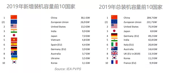 老牌光伏國家,如法國,荷蘭和土耳其光伏行業(yè)完成度較高已經(jīng)脫離新裝機前十。越南和烏克蘭進入2019年新增裝機前十。由于過去裝機水平,累計裝機前十的國家顯示出更多的慣性。